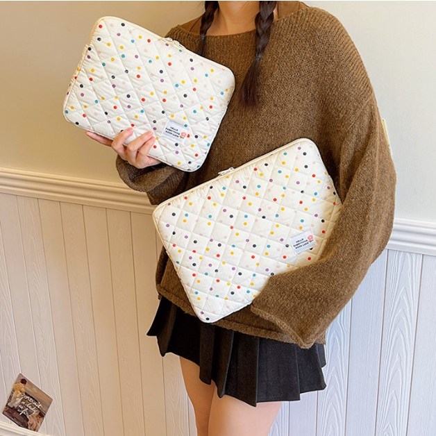 [당배/사은품증정] 노트북 파우치 도트 누빔 실버 노트북 가방 맥북 아이패드 테블릿 13인치 14인치 15인치 16인치