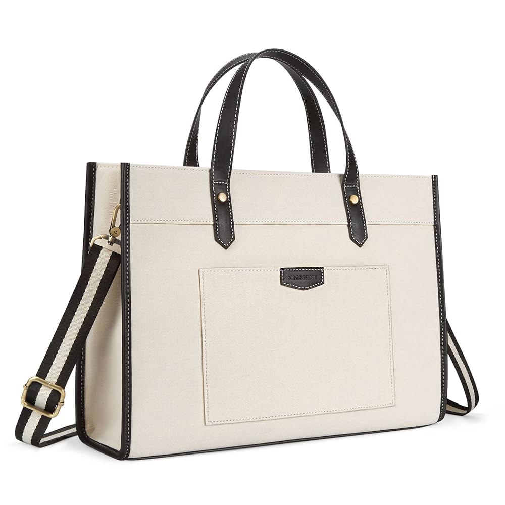 미스나인 노트북 토트백 캔버스 가방 15 6인치 워크 숄더백 여행 사무실 대학용 캐주얼 서류