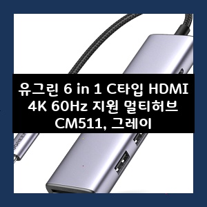 유그린 6 in 1 C타입 HDMI 4K 60Hz 지원 멀티허브 CM511, 그레이