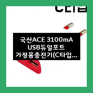 국산ACE 3100mA USB듀얼포트 가정용충전기(C타입 케이블포함), 1개