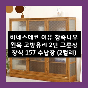 바네스데코 미유 참죽나무 원목 고방유리 2단 그릇장 장식 157 수납장 (2컬러)
