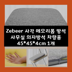 Zebeer 사각 메모리폼 방석 사무실 의자방석 차량용 45*45*4cm 1개