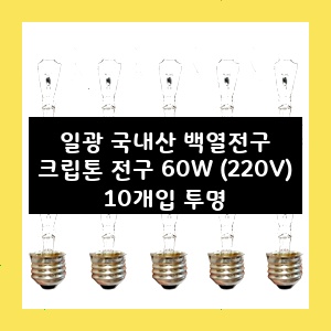 일광 국내산 백열전구 크립톤 전구 60W (220V) 10개입 투명