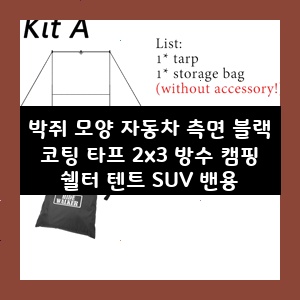 박쥐 모양 자동차 측면 블랙 코팅 타프 2x3 방수 캠핑 쉘터 텐트 SUV 밴용