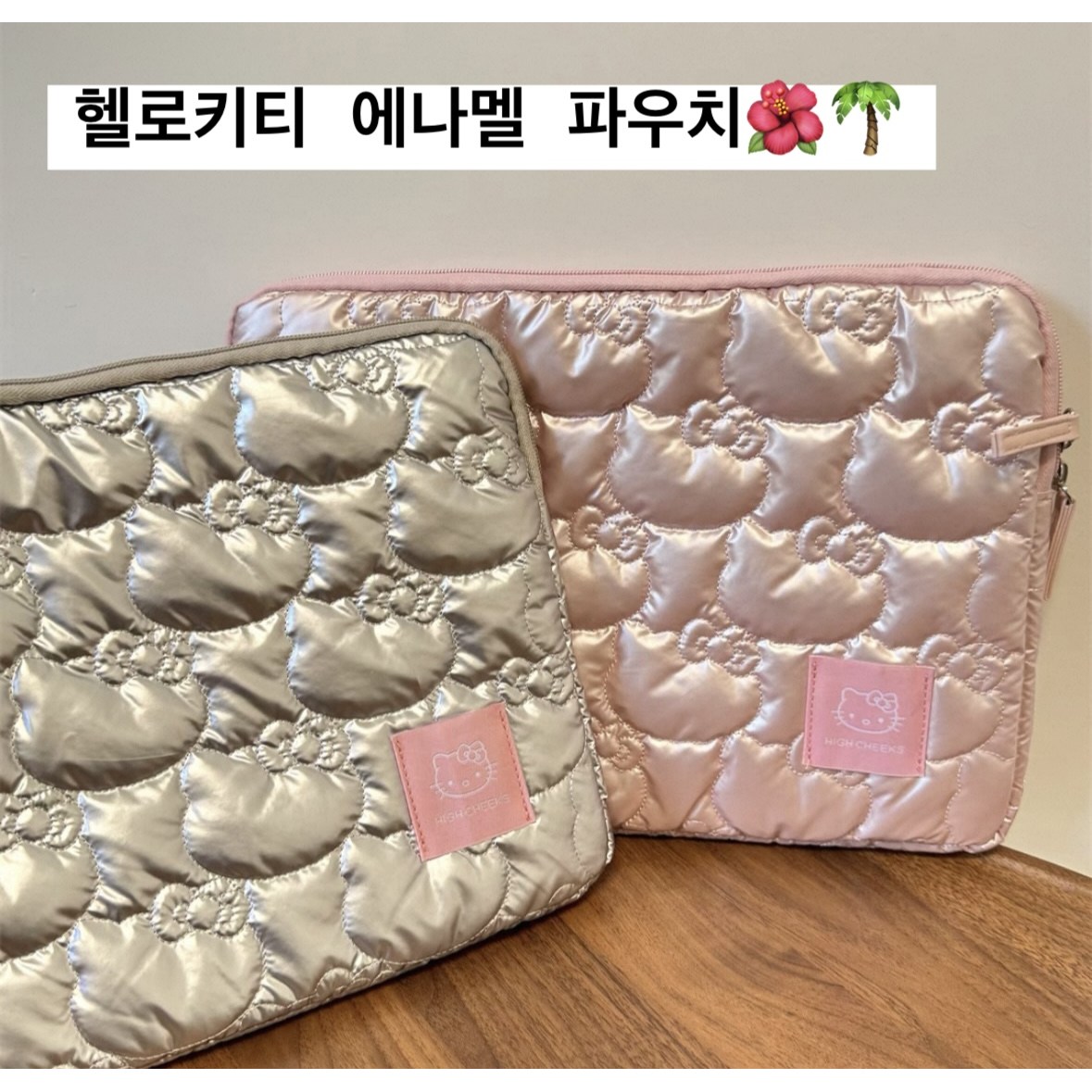 키티 패딩 퀄팅 에나멜 노트북 아이패드 파우치 13인치 15인치