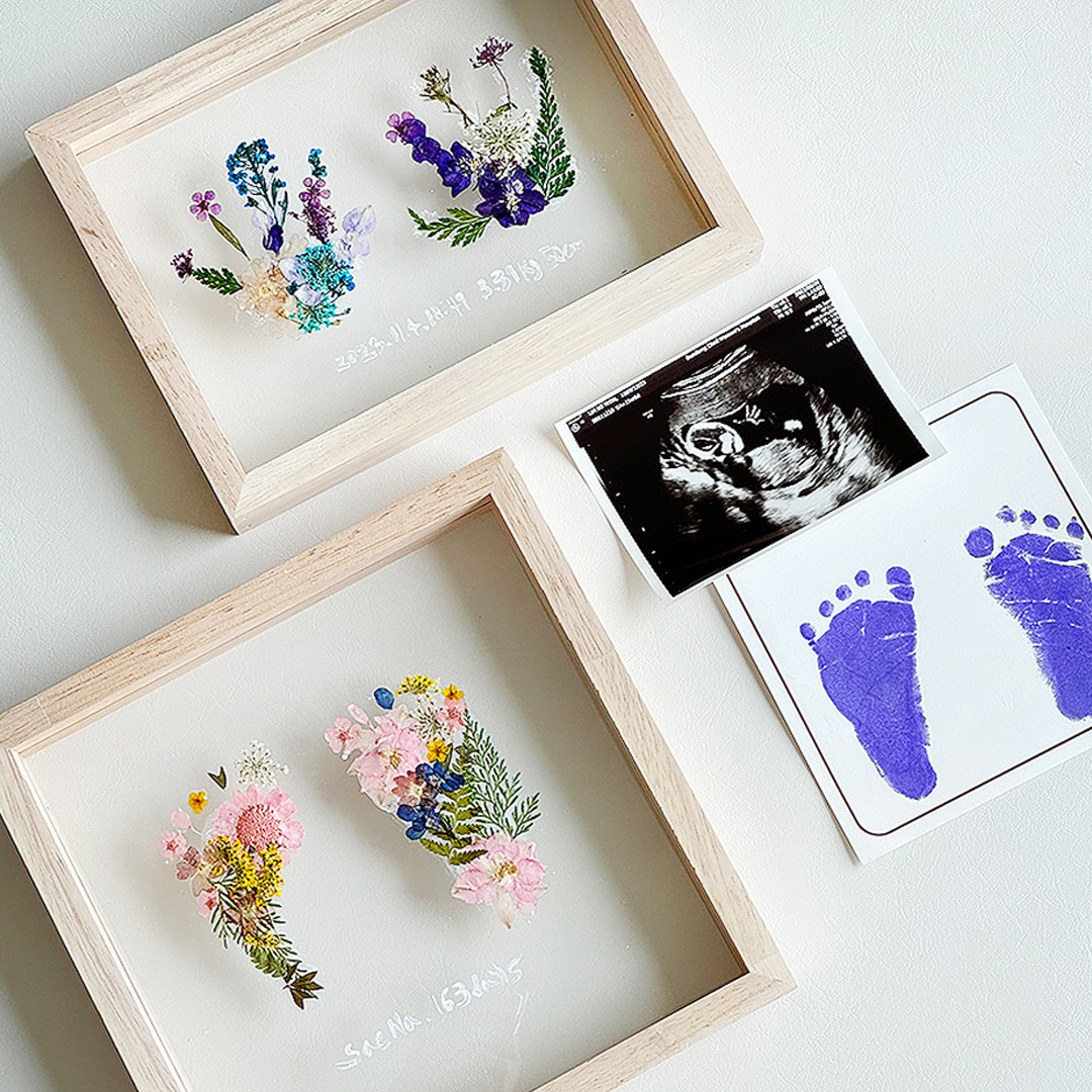 생화 압화 꽃 아기 가족 손 발 도장 아크릴 나무 액자 DIY 포토존 소품 만들기 공예 재료 키트