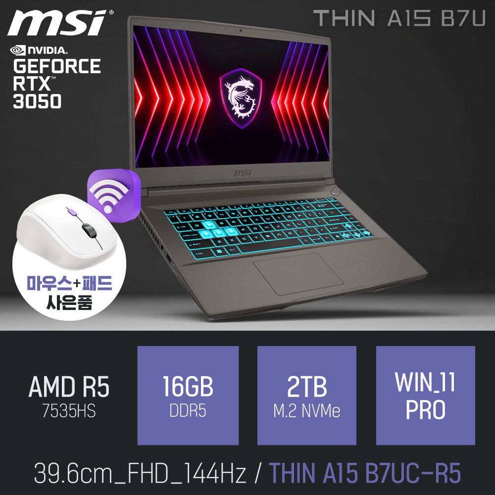 MSI 씬 A15 B7UC-R5 고성능 게임 영상편집 포토샵 캐드 15인치 노트북